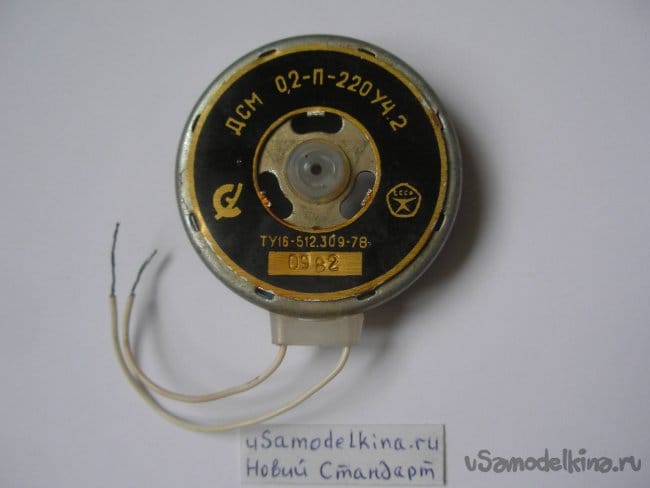 -моторчик переменного тока на 220 в с постоянным магнитом на роторе, советский с редуктором около 1:20;