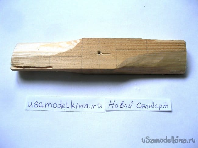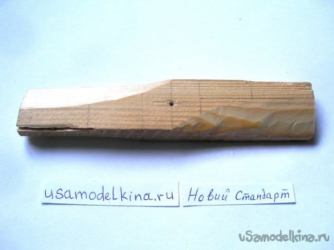 Этап 2. Зачистка и шлифовка планки, придавая ей форму воздушного винта, контролируя при этом центр тяжести элемента в пределах центрального отверстия.