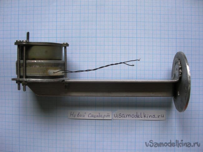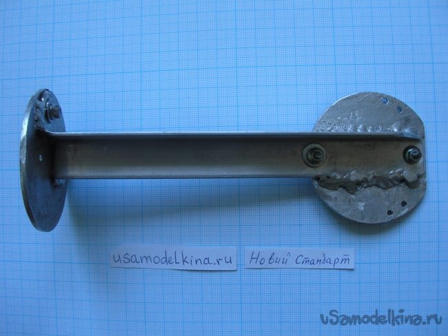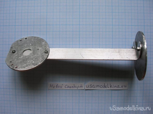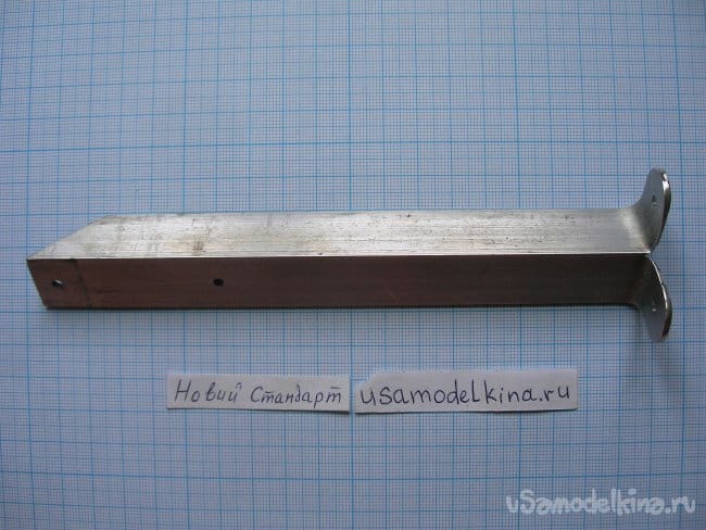 Этап 6. Стойку для генератора делаю с дюралевого уголка размером 2*20*20мм длинной под диаметр воздушного винта плюс запас 30мм, то есть всего около 180мм.Для этого на одном конце уголок разрезаю, и загибаю концы перпендикулярно к самому уголку.