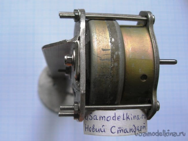 Этап 8. Подготавливаю генератор втаскивая с него обгонную муфту, так как ветряк должен вращаться, как за так и против часовой стрелки. Редуктор генератора перед установкой надо смазать густой смазкой. Между дюралевым кружком и генератором устанавливаю резиновую прокладку и стягиваю все вместе винтиками М3 с гайками.