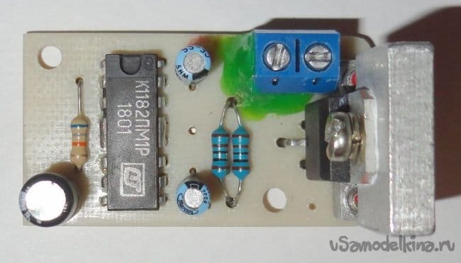 В ходе монтажа был заменен резистор R2, на два параллельных общим сопротивлением 500 Ом (поэтому есть разница на фото). Время плавного разгона пильного диска 2-3 сек.