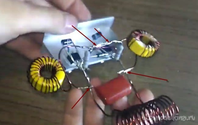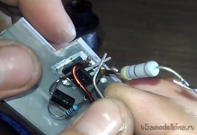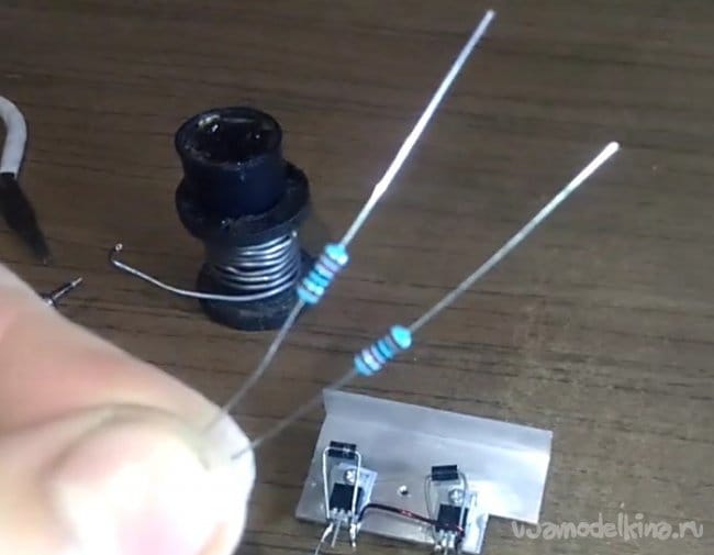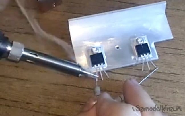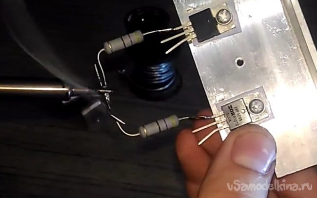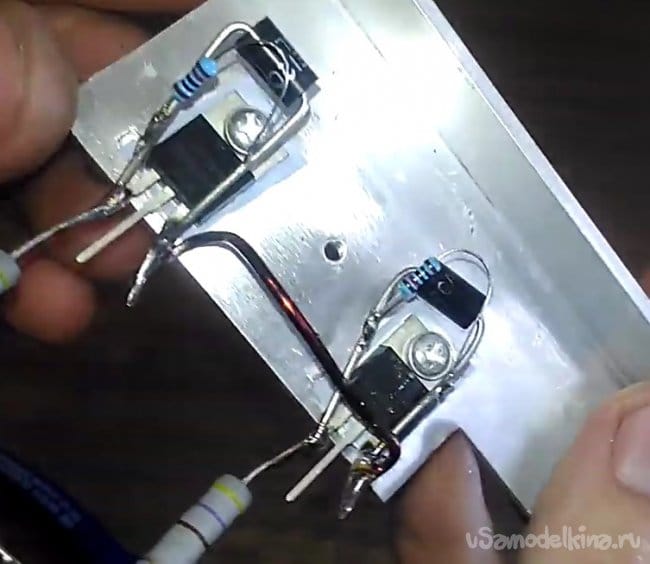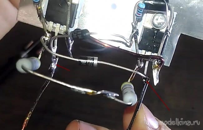 Их необходимо припаять между левой и правой "ножкой" транзистора. Все это делается с 2 транзисторами.