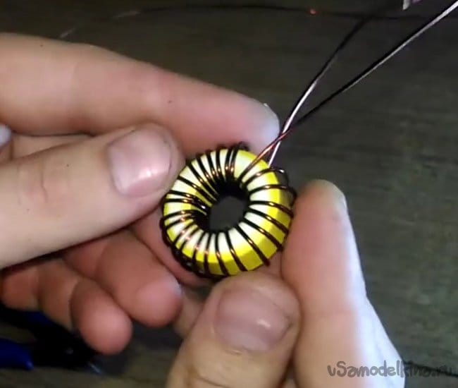 Шаг 2: Намотка катушки на ферритовые кольца. На этом этапе необходимо намотать провод 1.2мм2 на ферритовые кольца.