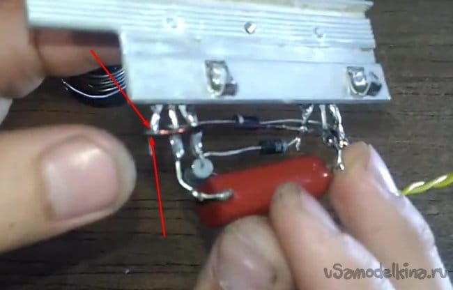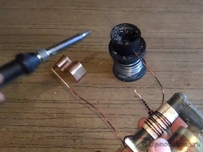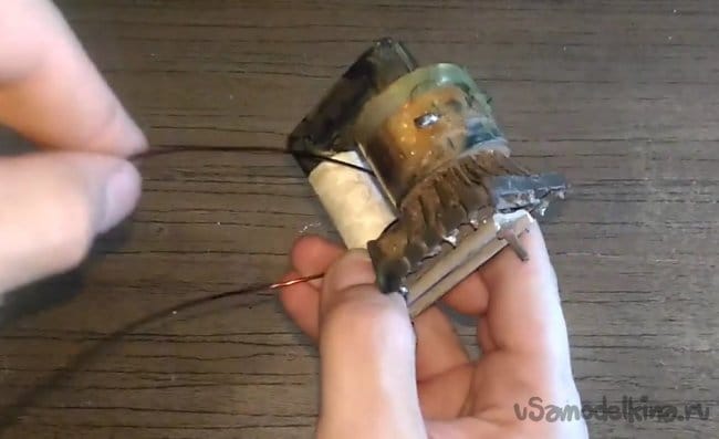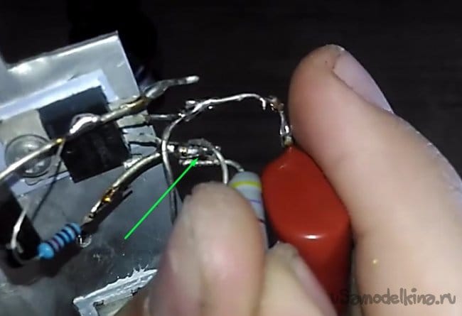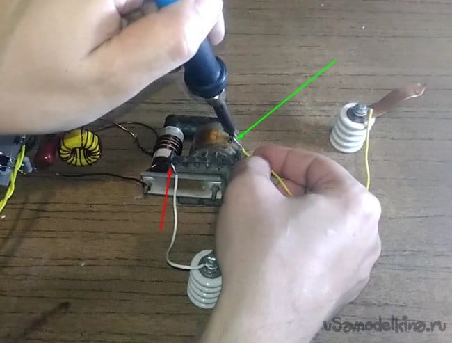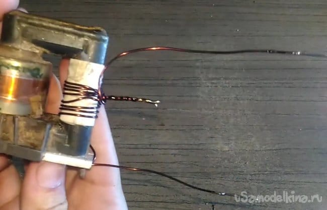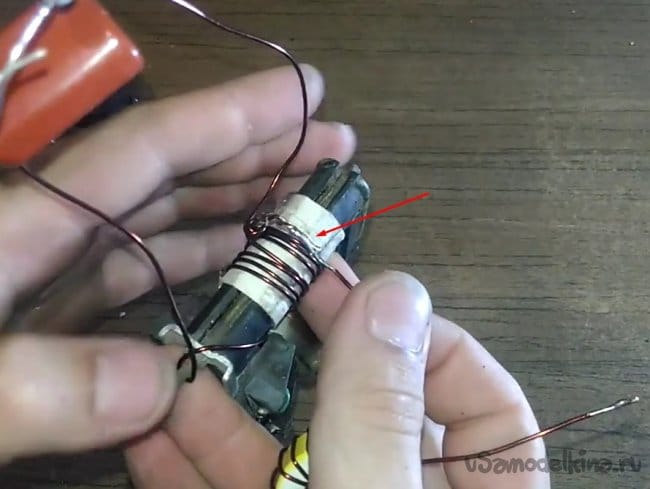 Концы обмотки трансформатора припаиваем параллельна конденсатору.