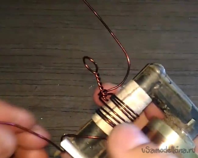 Продеваем провод и просто придерживая, наматываем 3 витка провода.