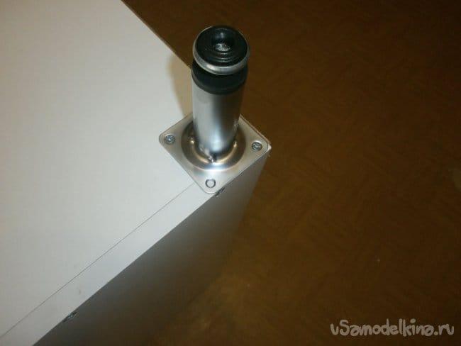 Ножки нижних шкафов. Выбрал простые, так как не знал, буду их закрывать порогами или нет, но такую возможность предусмотрел. Поэтому взял цилиндрические.