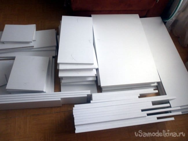 Сперва привезли распил на шкафы-ящики (заказывал сразу с оклейкой кромкой),