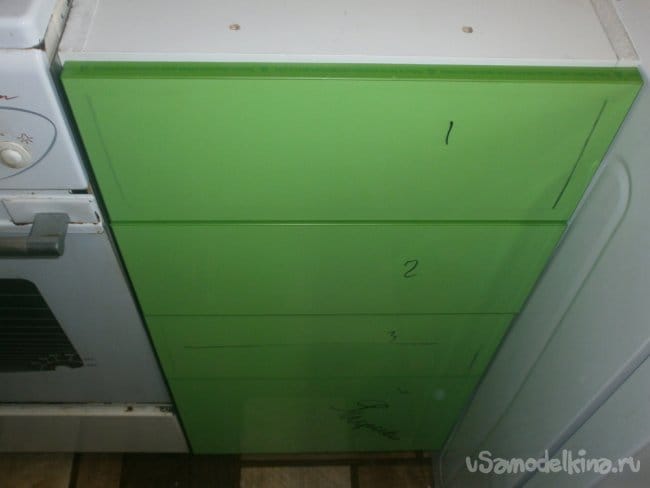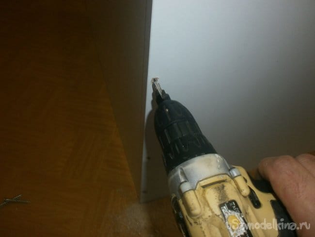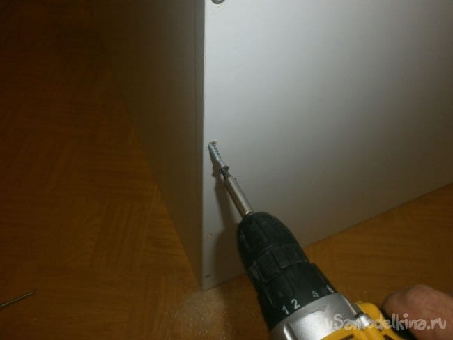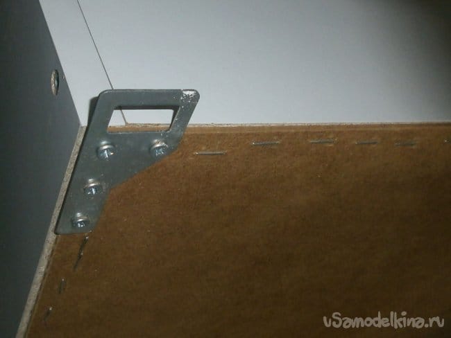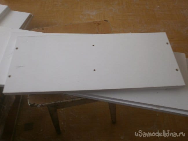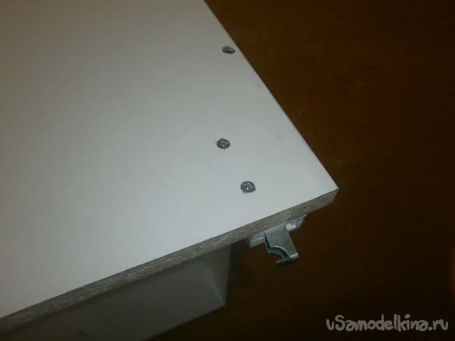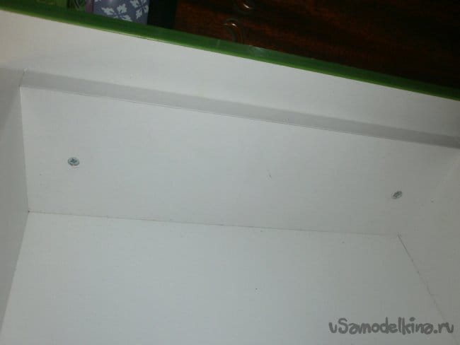 Прикручиваю каждый из них двумя саморезами изнутри: потом когда буду ставить ручки, они ещё и ей притянутся.
