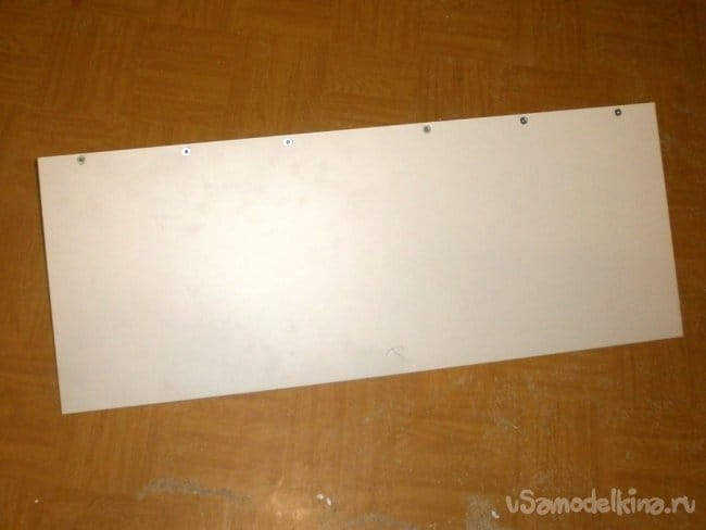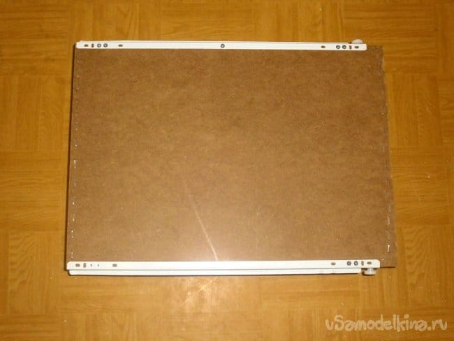 Примеряем лист оргалита. Если нужно, их немного проворачиваем. Также поступаем и с другой стороны.