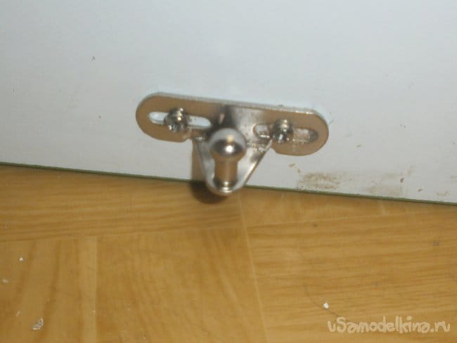 два щелчка и вуаля, упор стоит. Можно обойтись одним на шкафчик, но я предпочитаю ставить по два, с каждой стороны. Так и дверцу не перекосит, и если один вдруг выйдет из строя, то она не долбанёт по голове, когда будете что-то искать внутри. Только подбирайте менее жёсткие, если тоже будете ставить по два.
