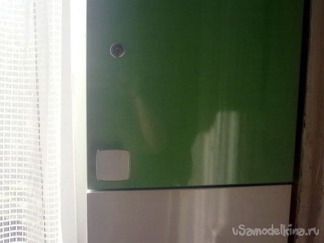 Теперь прикручиваем ручки. Никаких премудростей, по два отверстия диаметром 4 мм в каждой дверце и готово.