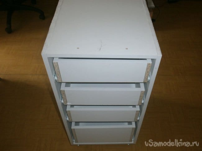 Один готов, также и поступаем со всеми остальными. Кстати у меня фасады немного запаздывали, поэтому их прикрутил позже, а вы можете делать всё сразу.