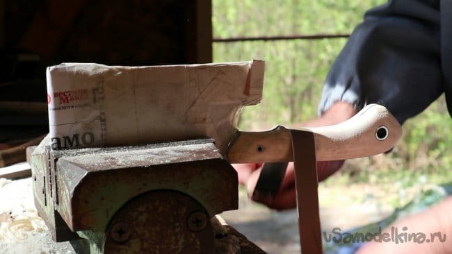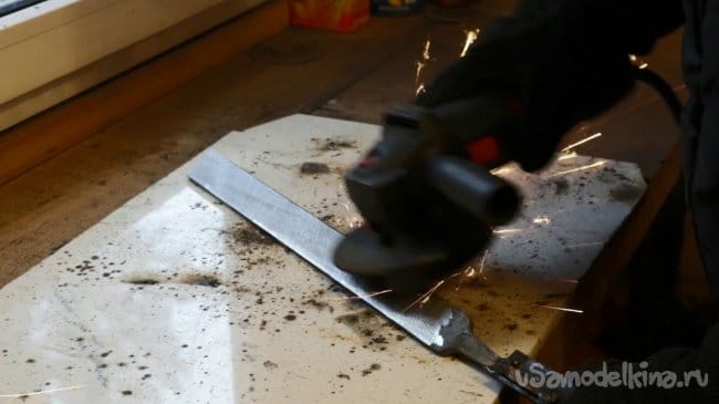 Придаем законченный черты ножу напильником и шлифовальной машинкой (опять таки, весь процесс лучше смотреть на видео):