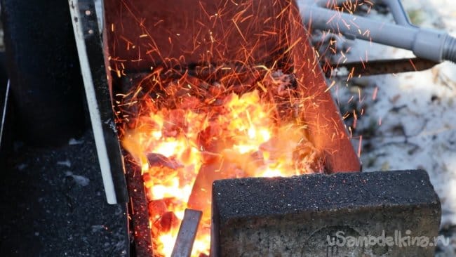 Далее делаем вилку для горна. Она нужна для подачи воздуха на угли: