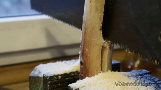 Затачиваем топор на камне до бритвенного состояния и идем в лес за древесиной для рукояти.