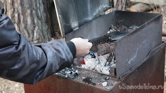 По поводу вилки хочется сказать 2 вещи. Во-первых, пылесос действительно выдает более чем достаточный напор воздуха! Однако (во-вторых) вилка - не лучшая конфигурация для направления воздушного потока. Не рекомендую делать так же. Это был эксперимент и его нельзя признать удачным. Мучений было много... В будущем вилку уберу в мангал, а для горна переделаю поддон, чтобы подача воздуха шла снизу.