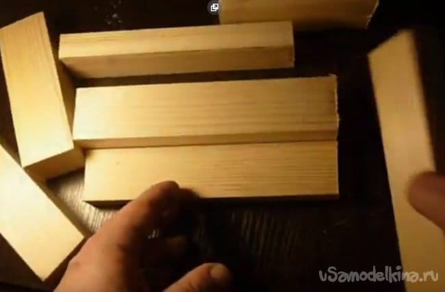 - Подготавливаем бруски(размеры исходя из ваших потребностей при дальнейшей работе с деревом), всего семь.