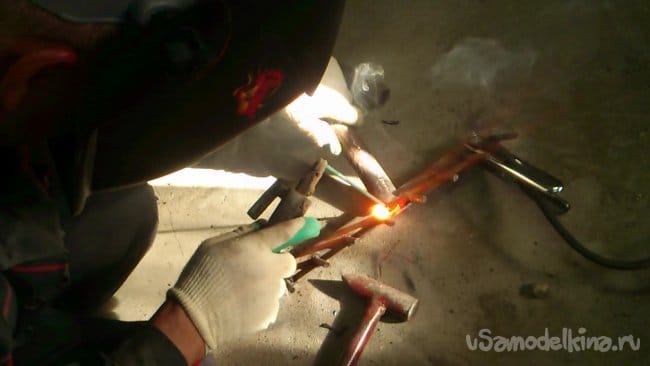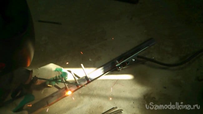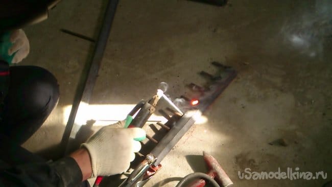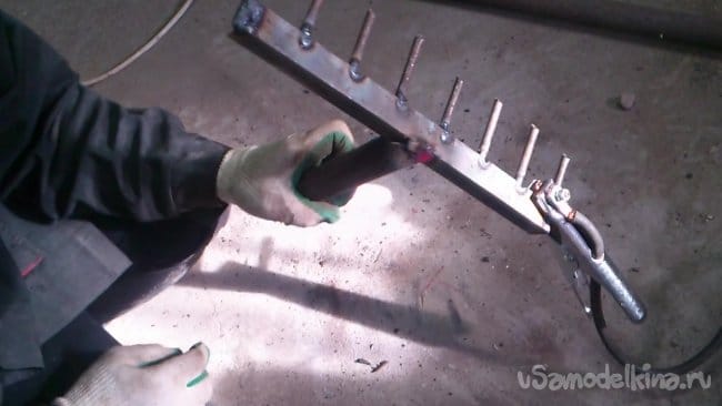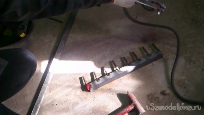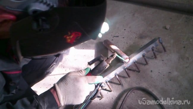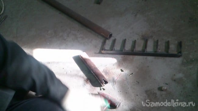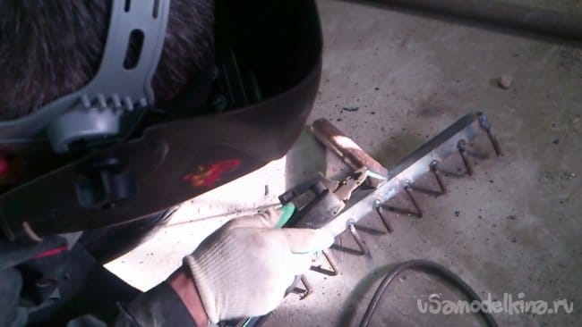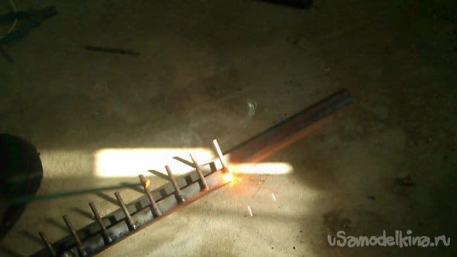 Теперь перевернул заготовку грабель, и приварил каждый зуб с наружной стороны: