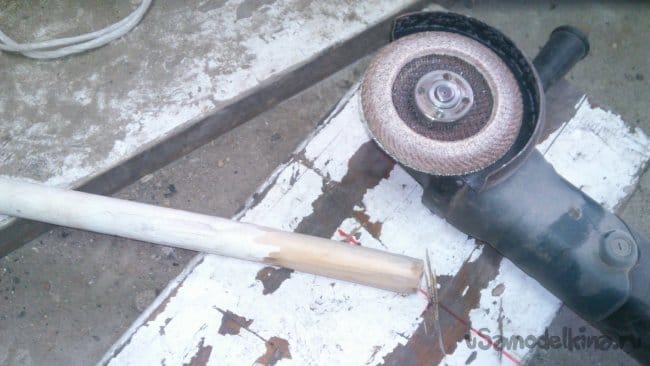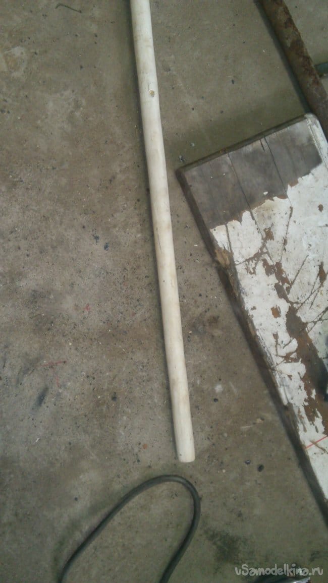 Ну что-ж... Вот они, можно сказать, и готовы... Осталось сделать черенок. В прошлый раз, создавая первую версию, я, в качестве черенка, использовал попавшийся под руку кусок армированной полипропиленовой трубы. (Я как раз монтирую отопление). На этот раз такого обрезка уже не было, но был нормальный черенок, на котором у меня располагался когда-то покрасочный валик. (Я грунтовал им стены). Валик я снял давно. Черенок остался. Его я и решил использовать: