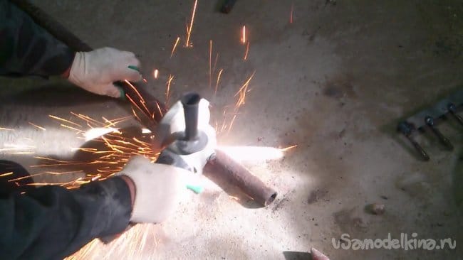 Труба была очень ржавой, поэтому, я слегка зачистил её наждачно-лепестковым кругом: