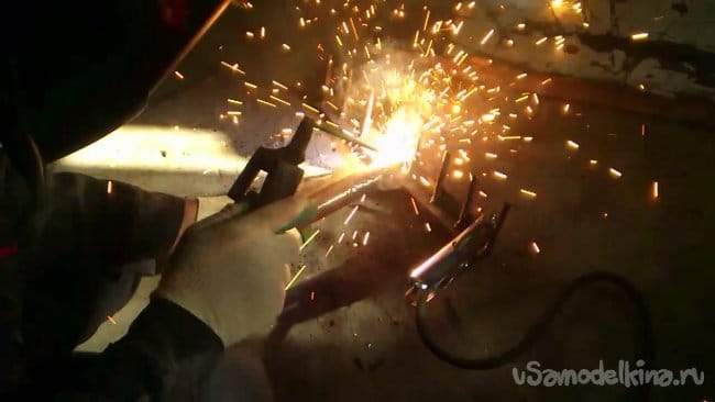 После чего осталось только проварить сплошным швом и эту часть крепления: