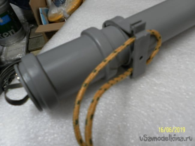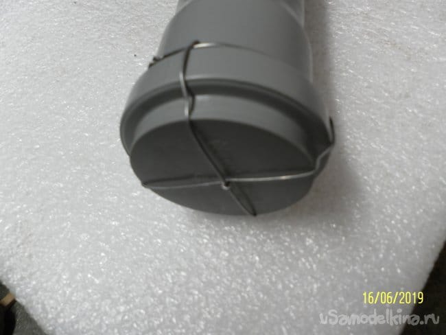 Добрый день! Предлагаю тубус для хранения электродов домашнему умельцу. Наводил по весне порядок в гараже. Открыв пачку с электродами для сварочника, обнаружил, что они полусырые, покрыты каким то белёсым налётом. Задумался, из чего бы можно было сделать герметичное хранилище. Поискал в Интернете решение. Остановил свой выбор на канализационной трубе d=50mm. Весь комплект, включая трубу, две заглушки, удлинитель-соединитель и кронштейн с защёлкой обошёлся мне менее ста рублей. Изготовление данного девайса заняло около часа времени. Обратите внимание на то, как я решил проблему выпадающего дна. Закрепил заглушку вязальной проволокой крест- на крест и обтянул хомутателем адвоката Егорова. В кронштейне с защёлкой просверлил два отверстия для веревки. Получается, что кронштейн служит для переноски, подвеса и т.д., и препятствует скатыванию данного тубуса с ровной и гладкой поверхности, допустим стола, верстака или полки. В заглушки вставил вспененный полистирол, что бы не пробить их электродами.