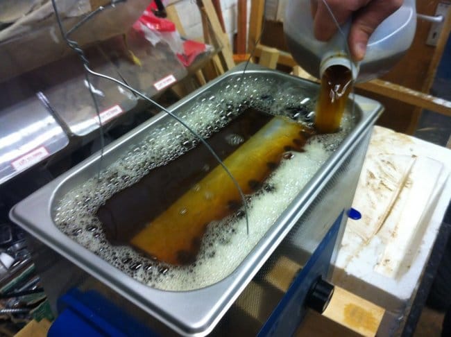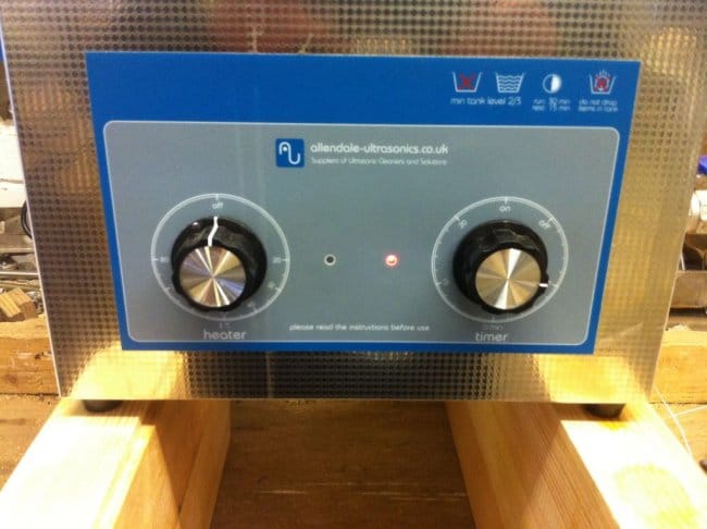 Процесс прост. Вы помещаете в ванну инструмент и заливаете специальный чистящий раствор (я думаю это растворитель). Включаете устройство.