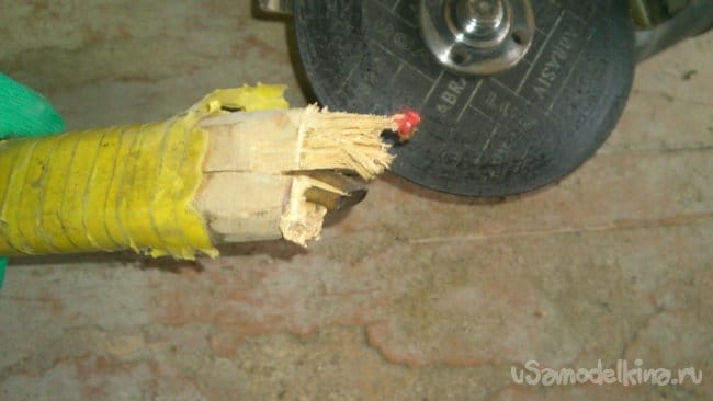 После этого, установив на "болгарку" наждачно-лепестковый круг, я слегка обработал полученную заготовку, придав ей форму рукоятки: