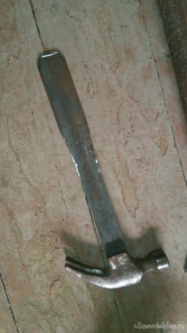 Но дело в том, что грубые временные конструкции собираются из досок большой толщины и, как следствие, используются при этом гвозди больших размеров. К тому-же, гвозди быстро окисляются под воздействием осадков и строительных растворов, и извлечь их достаточно трудно. Рукоятка молотка при этом, подвергается огромным нагрузкам, направленным "на излом", и, если она сделана из дерева, очень часто ломается. Я пробовал вместо рукоятки приварить отрезок металлической трубы, но это смещает центр тяжести, и молоток существенно теряет импульс удара. Как гвоздодёр его по прежнему можно использовать, но, вот, забивать им крупные гвозди уже тяжело.
