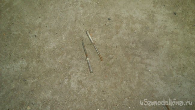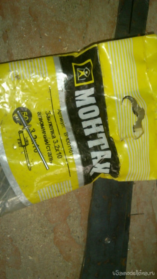 Теперь нужно закрепить накладки на металле. Раньше я использовал для этой цели винты с гайками. Но тогда я работал в мастерской. Сегодня, как на зло, под рукой (на стройке) ничего похожего не оказалось. Но делать то надо "здесь и сейчас", иначе потом не скоро найдётся время..))) Покопавшись в своих запасах, я нашёл пакетик вытяжных заклёпок: