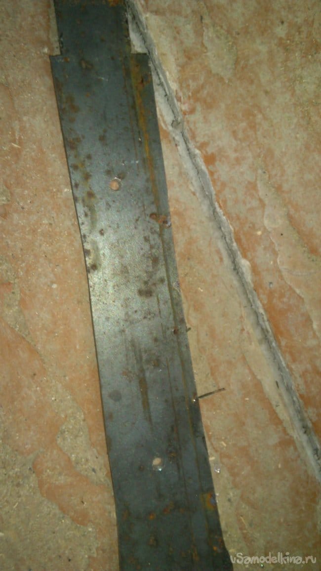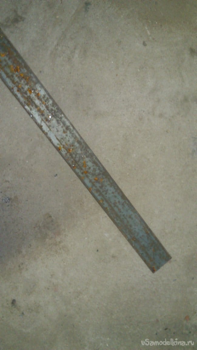 Затем нашёл в "нужном металлоломе" кусок полосы-"сороковки". (Просто, у меня есть такие обрезки. А подойдёт и другого размера. Или, к примеру, можно использовать полку стального уголка. Главное, чтобы толщина стали была 3-5 мм.)