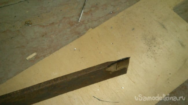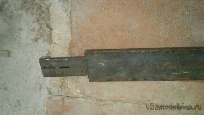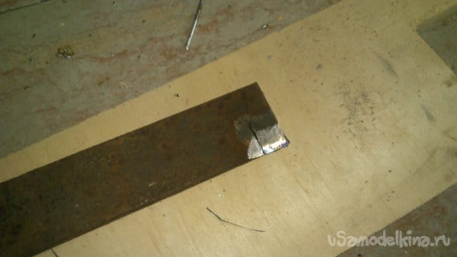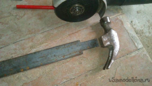 Отрезав необходимую длину, я уменьшил в торце ширину полосы до значения, равного длине посадочного отверстия молотка, на длину, равную высоте молотка: