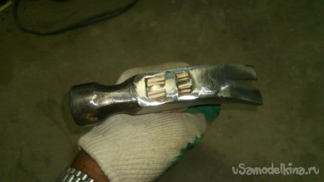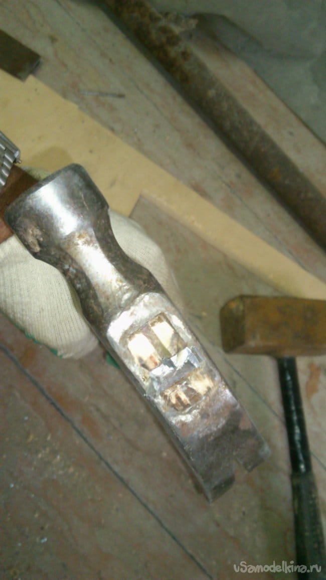 Затем сделал надрез для клина (такие молотки расклиниваются поперёк)