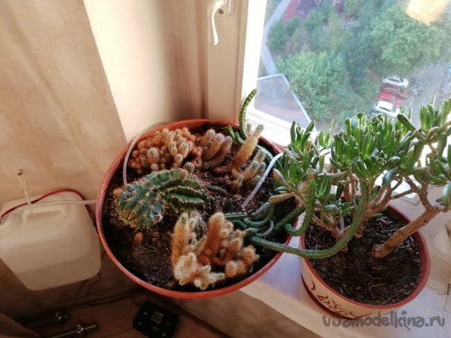 В целом системой я доволен. Она исправно поливает мои растения на подоконнике около года. Сейчас я перенес систему в другую комнату, а в своей собрал новую, более удобную и интересную, но это уже другая история…