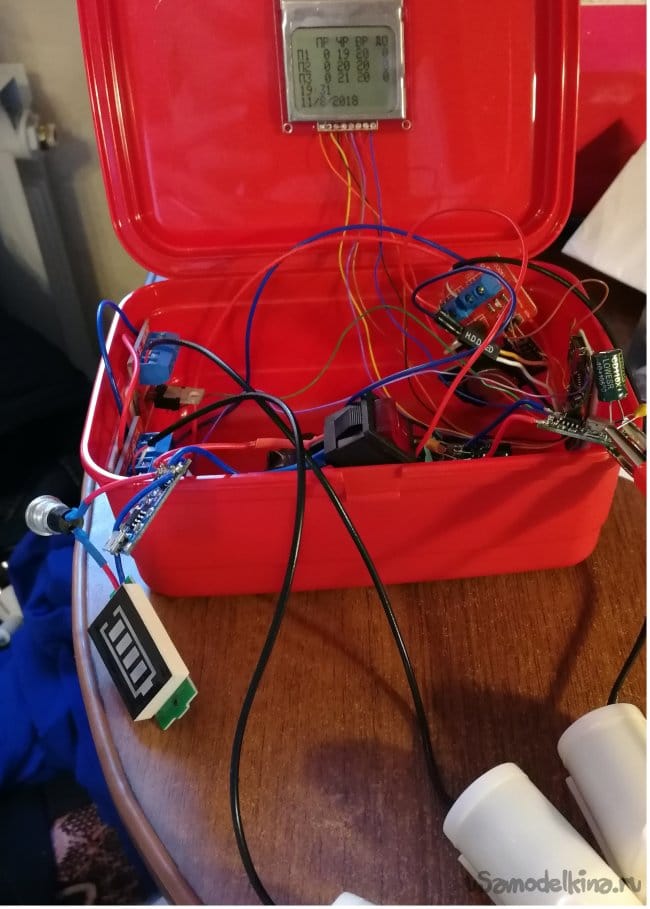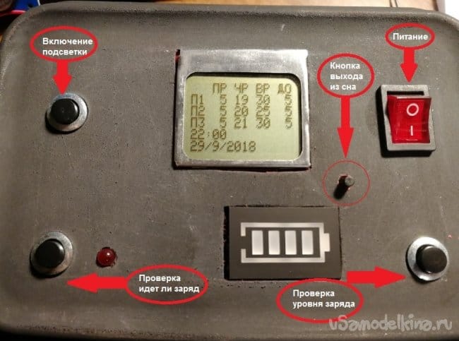 Блок управления – сердце системы. Здесь находится Аккумуляторы, Arduino, модуль времени DS3231, дисплей, преобразователи напряжения и органы управления.