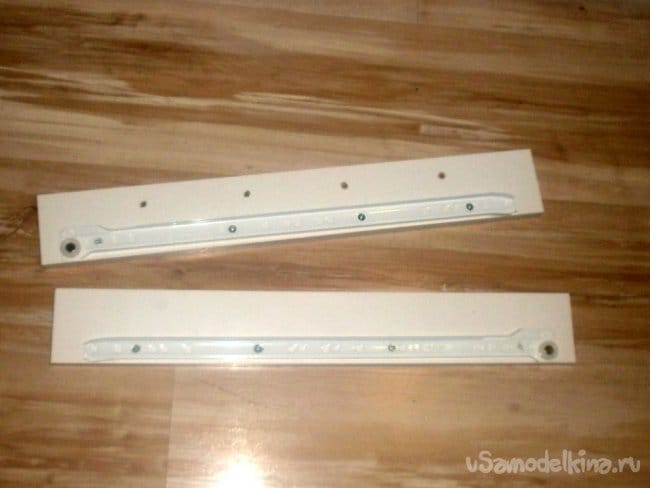 А затем снизу вкрутил в одну из боковин полочки.