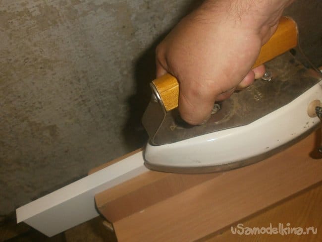 Горячим, тяжёлым (просто так проще) утюгом приклеиваем кромку к детали,