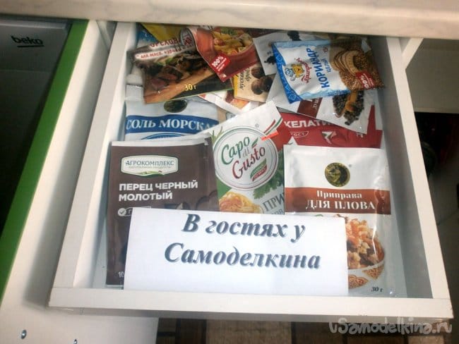 Могу поспорить, что на каждой кухне (конечно, если она не «для галочки», а готовите вы там только яичницу или варите покупные пельмени), есть много пакетиков со специями. Теми, что покупаются под конкретное блюдо, а затем хранятся. Кто-то пересыпает содержимое (а именно в них чаще всего они и покупаются) по баночкам, и потом отводит под это безумие целый шкаф. Кто-то заводит коробочку, ставя её на самую верхнюю полку (конечно, требуется она очень редко, поэтому так), а затем ругается, каждый раз доставая её.
