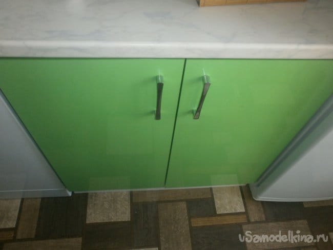 Столешница. Её придётся снять: сделать без этого не получится. Поэтому откручиваем крепления, которыми она притянута к шкафам. А вот винты это, саморезы или что ещё, не имеет никакой разницы. Главное, чтобы при сборке обратно вы попали в те же отверстия: так даже выравнивать шкафы по уровню, подкручивая-откручивая ножки, не придётся.