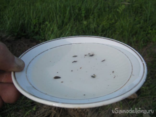 На фото видно как в нашу емкость наползло всякой живности. Препятствовать этому можно накрыв емкость сеточкой (если есть). Попавших насекомых можно отфильтровать через ткань, пучок травы.