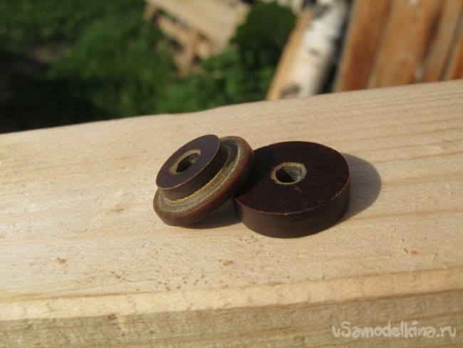 Части изолятора выпилены из пластины лобзиком по дереву и обточены на сверлильном станке.