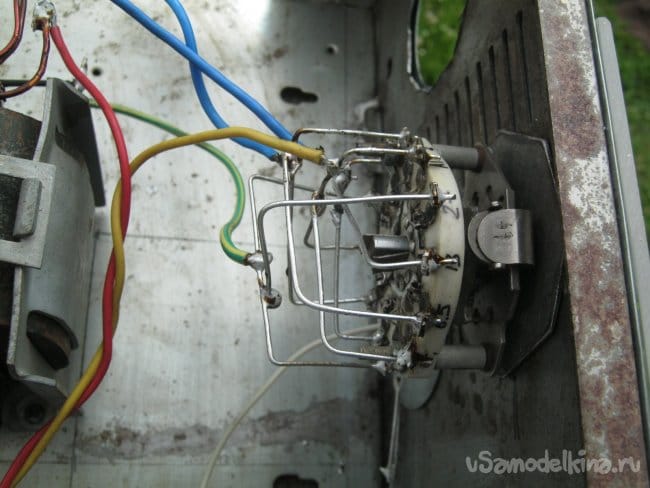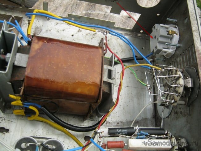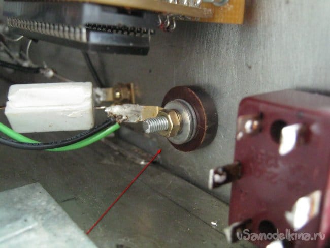 Временный сетевой провод заменен постоянной проводкой через сетевой тумблер и колодку предохранителя. Жгуты и провода проложены аналогично – дополнительная изоляция от металлического шасси, механическое крепление, изоляция мест пайки.