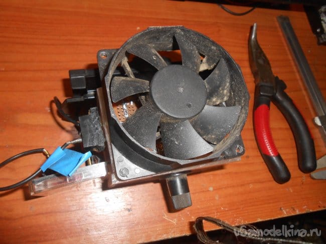 Ключ (irf 3205), диод Шотки (из АТХ sbl 3040) и 7809 установил на радиатор с кулером от старого ПК