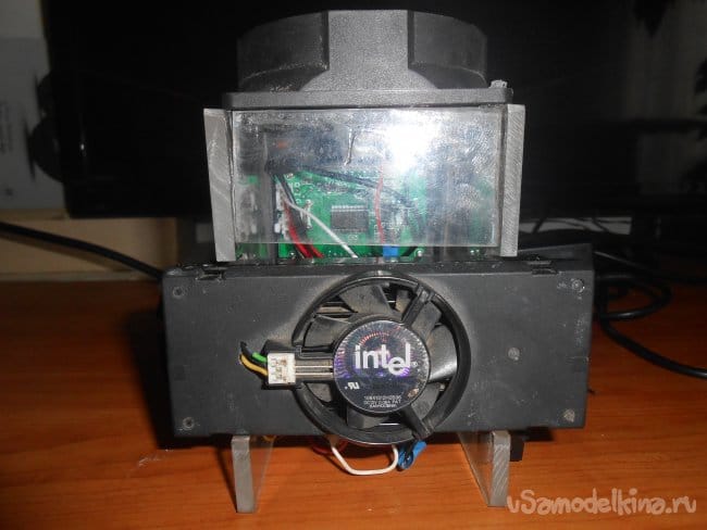 С верху кулер от бп АТХ, в первом варианте он был с низу.