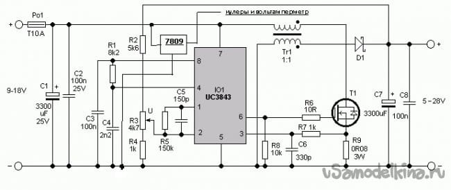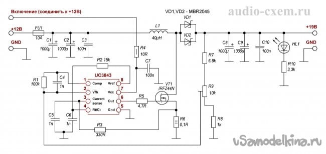 Выбор пал на схему dc –dc повышающий на базе UC 3843.