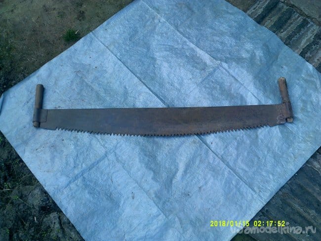 Ножовка, сделанная из двуручной пилы, хорошо подходит для этой работы. Ей можно одному человеку отпилить упавшее дерево диаметром до 30-35 см, а также пользоваться этой ножовкой при строительных работах для отрезания толстых брусьев и досок.