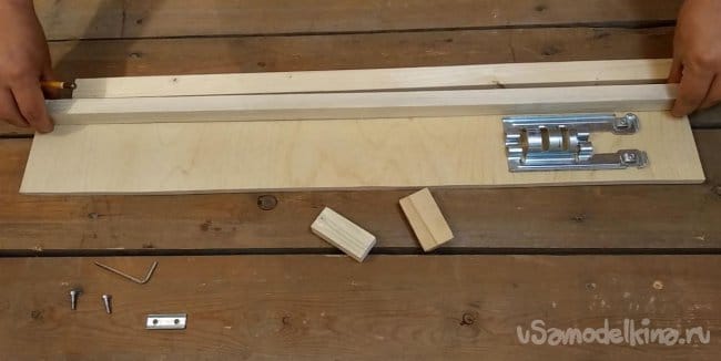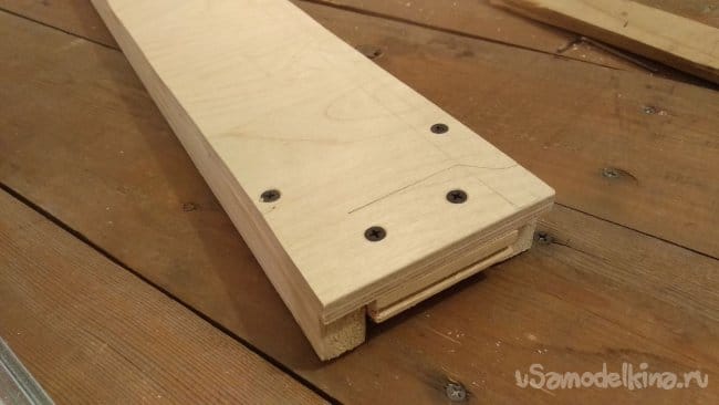 Для этого возьмем кусок фанеры длиной, равной длине станины.