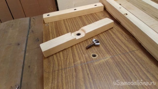 4. Устанавливаем по торцам упоры – они будут использоваться как упоры для основания лобзика, а также для установки крепежа.