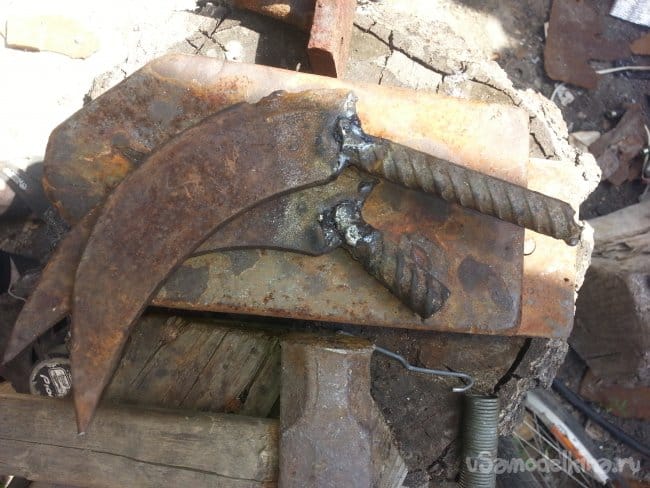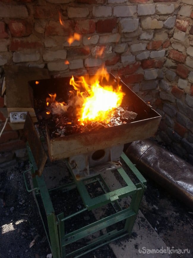 К ножам приварена арматура в дальнейшем отламываю, Разжигаю свой горн