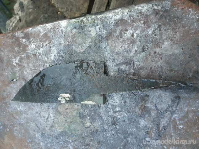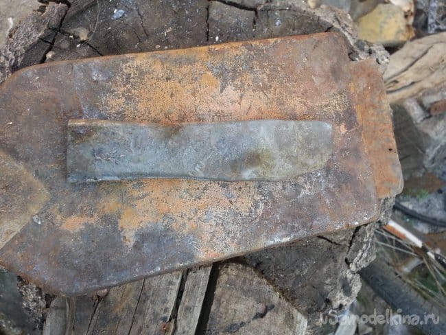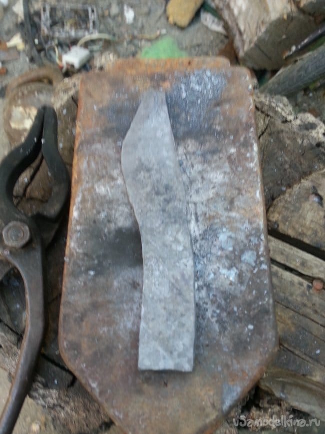 Перед ковкой нагреваю и медленно остужаю, так метал становиться послушней. Нагреваю и выравниваю заготовку. Нагреваю и кую формировать толщину 2мм.